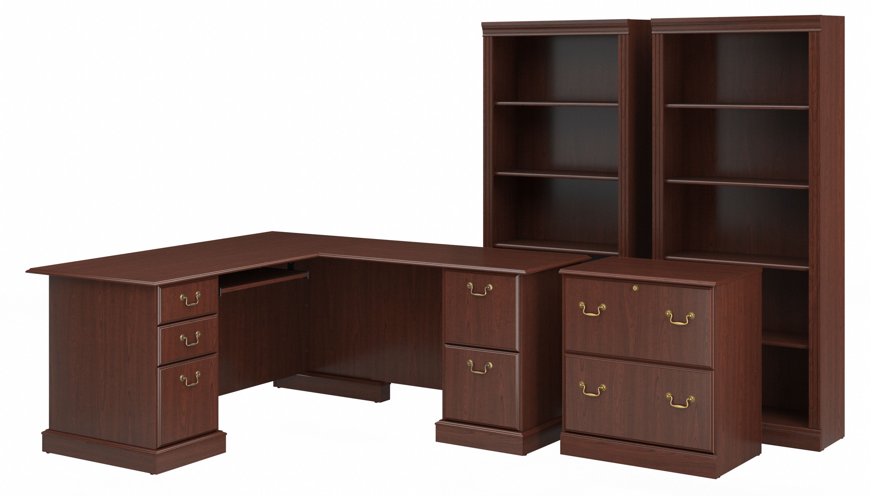 Bush Saratoga L Shaped Desk With File Cabinet And Two Bookcases In